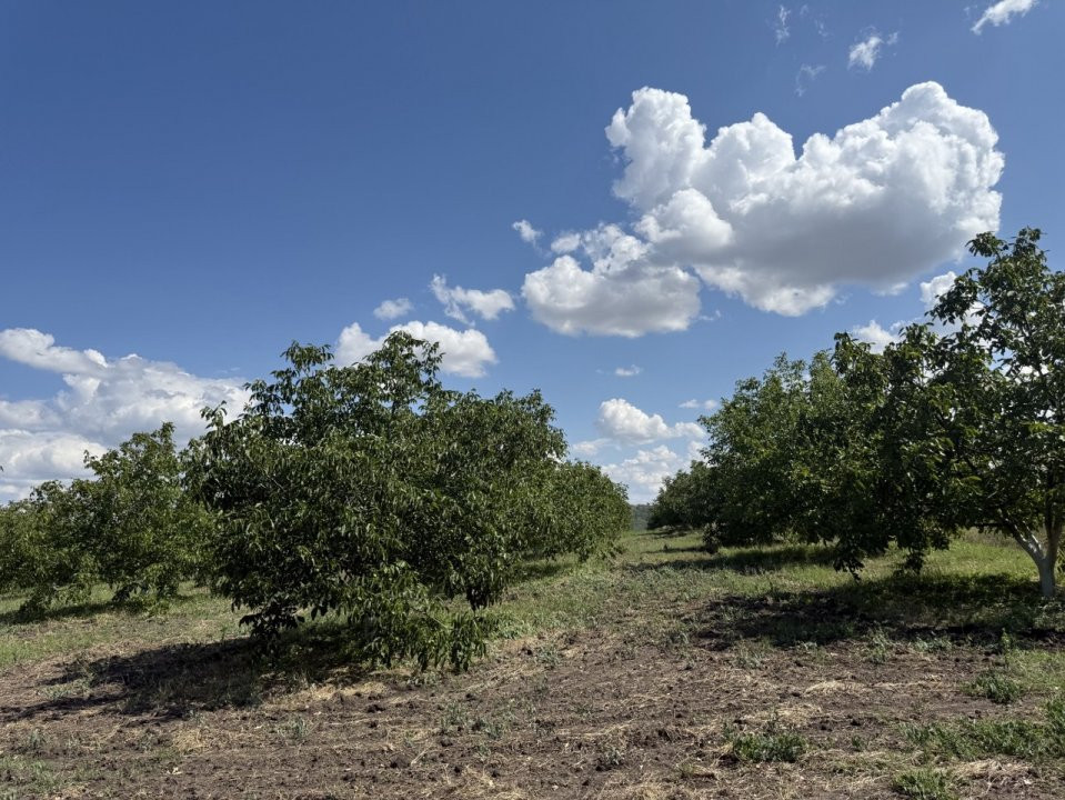 Soi de nuc Peschansky cu coajă subțire, cu randament ridicat în miez și rezistență la secetă și îngheț. Model de plantare 10x10, aproximativ 1000 de pomi.